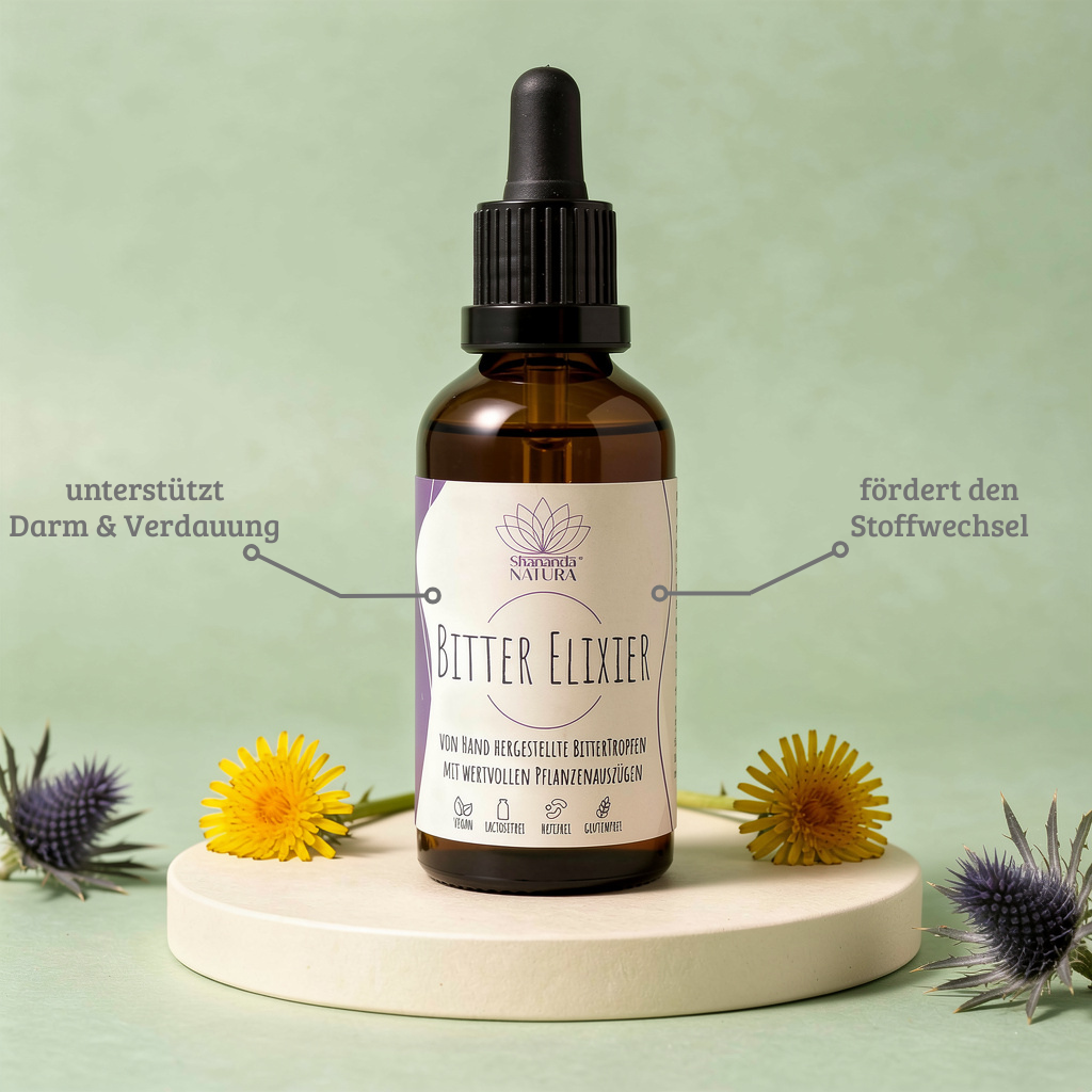 Bitter Elexier – Traditionelle Bitterstoffe für ganzheitliches Wohlbefinden Entdecken Sie die Kraft der Bitterstoffe, die bereits Hippokrates und Hildegard von Bingen schätzten. Unser Bitter Elexier kombiniert sorgfältig ausgewählte Wildkräuter, Obst, Gemüse und grünen Tee zu einer harmonischen Mischung. Die natürlichen Bitterstoffe wirken bereits im Mund und regen die Magensaftsekretion an – der erste Schritt zu optimierter Verdauung. Mit regelmäßiger Anwendung unterstützen Sie Ihren gesamten Stoffwechsel, bekämpfen Heißhunger und fördern die natürliche Basenbildung in Ihrem Körper. Ein bewährtes Elixier für mehr Vitalität und inneres Gleichgewicht.
