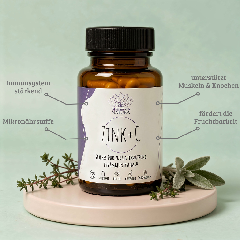 Zink und Vitamin C sind essenzielle Nährstoffe, die dein Körper täglich benötigt. Zink ist das zweithäufigste Spurenelement in deinem Organismus und unterstützt über 300 Enzymsysteme bei wichtigen biochemischen Prozessen. Es spielt eine zentrale Rolle in Haaren, Muskeln, Knochen und dem Immunsystem. Vitamin C gehört zu den wichtigsten Mikronährstoffen und wird von deinem Körper kontinuierlich verbraucht – eine tägliche Zufuhr ist daher unverzichtbar. Bekannt ist vor allem die unterstützende Wirkung auf dein Immunsystem, doch Vitamin C leistet noch viel mehr. Unser Zink+C kombiniert hochbioverfügbares Zinkglukonat mit Vitamin C – eine kraftvolle Partnerschaft für deine Gesundheit. Als Ergänzung zu einer ausgewogenen Ernährung hilft dir dieses Produkt, deinen Körper optimal mit diesen wertvollen Mikronährstoffen zu versorgen und dein Wohlbefinden nachhaltig zu unterstützen.